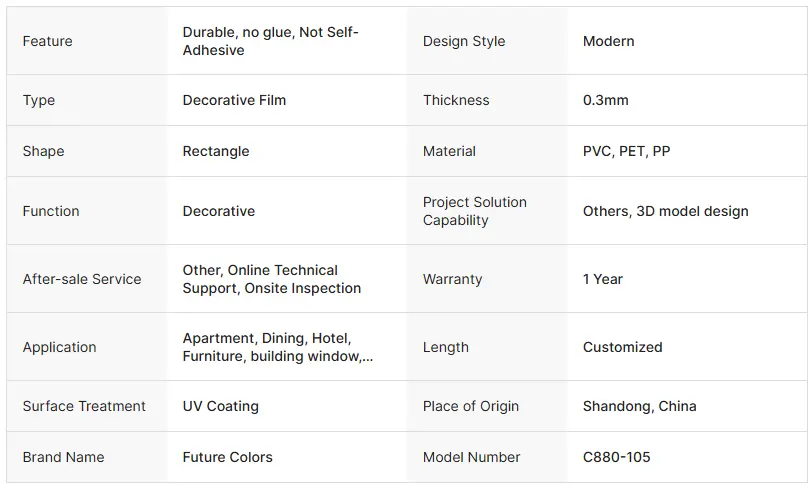 Phim vỉ màu rắn hiện đại là một vật liệu phim trang trí sử dụng nhựa phân tử cao làm vật liệu cơ bản. Sau khi tô màu và xử lý lớp phủ, nó đạt được độ bám dính thông qua "quá trình vỉ" (đúc hấp phụ chân không). Nó có tính năng "màu đồng nhất, độ dẻo mạnh và hiệu quả chi phí cao", và được sử dụng rộng rãi trong các lĩnh vực như đồ nội thất, trang trí và đóng gói. Nó là một trong những vật liệu thường được sử dụng trong thiết kế phong cách tối giản hiện đại.