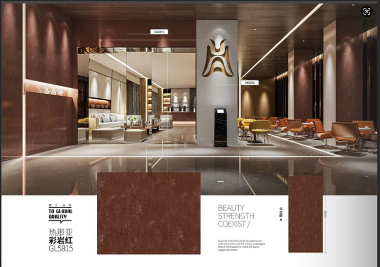 * Màu đỏ caramel: Màu đỏ đậm, với nền màu gỗ gụ và màu tím đậm, thích hợp để tạo không gian thương mại cao cấp, thường thấy trong các thiết kế không gian thương mại cao cấp;